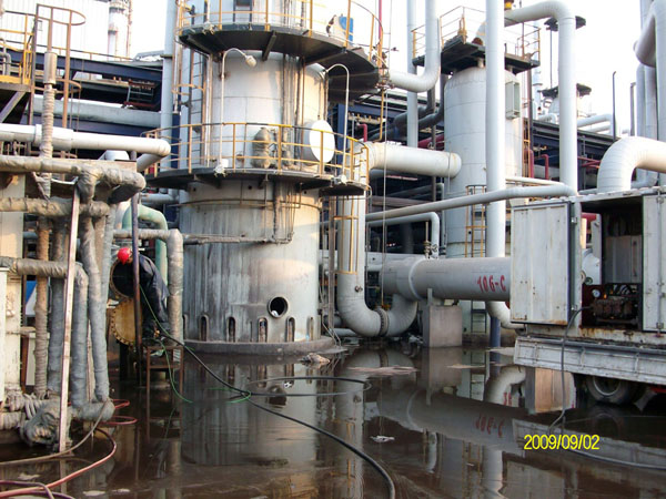 此項屬換熱設備清洗,與鍋爐同樣的原理,換熱設備在使用過程中,會不斷形成水垢,造成換熱效率降低,換熱效果差,達不到生產需求。我公司運用化學清洗和高壓水射流技術對換熱設備進行化學或物理的清洗處理,兩種工藝方法的互補,可以輕易清除死角地帶和彎曲管道中的垢層。